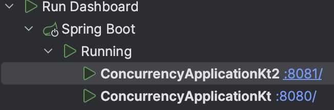 해당 문제를 테스트하기 위해, 8080포트, 8081 포트 총 2개의 서버를 실행하고, mysql에 데이터를 1개 삽입했다.