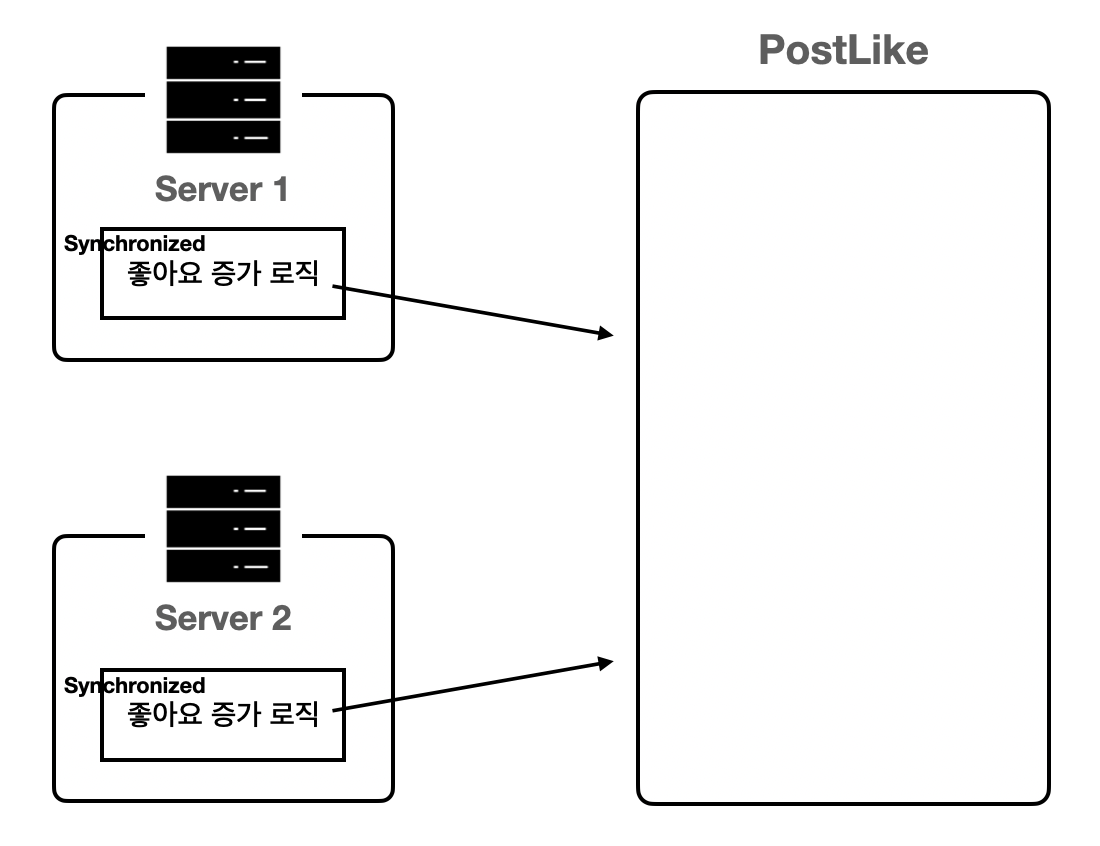 각 서버는 Synchronized를 활용하여 동시성을 보장하려하고 있다.