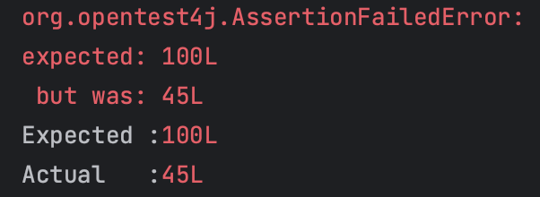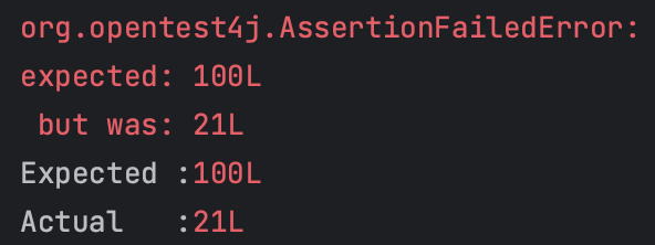 테스트 결과, 기대했던 좋아요 수 100이 저장되어 있는 것이 아닌 21이 저장되어 테스트가 실패하는 것을 확인할 수 있다.